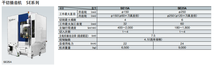 - · SE系列是實現完全干式切削的插齒機,可進行穩定且高生產率的加工。