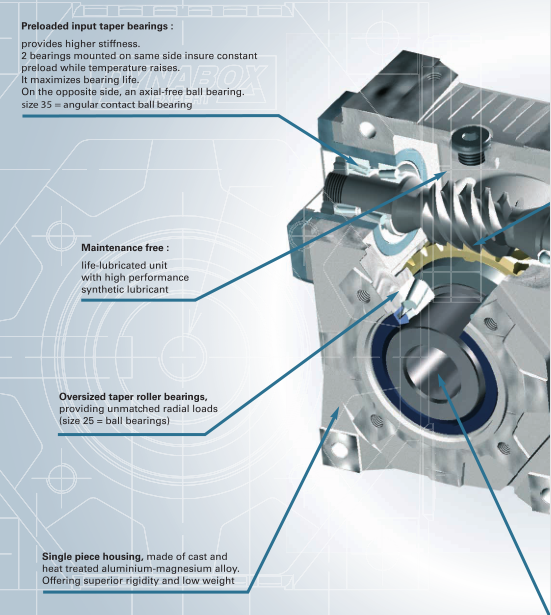 蝸輪:非常安靜,很大的過(guò)載能力,更高的扭轉(zhuǎn)剛度。